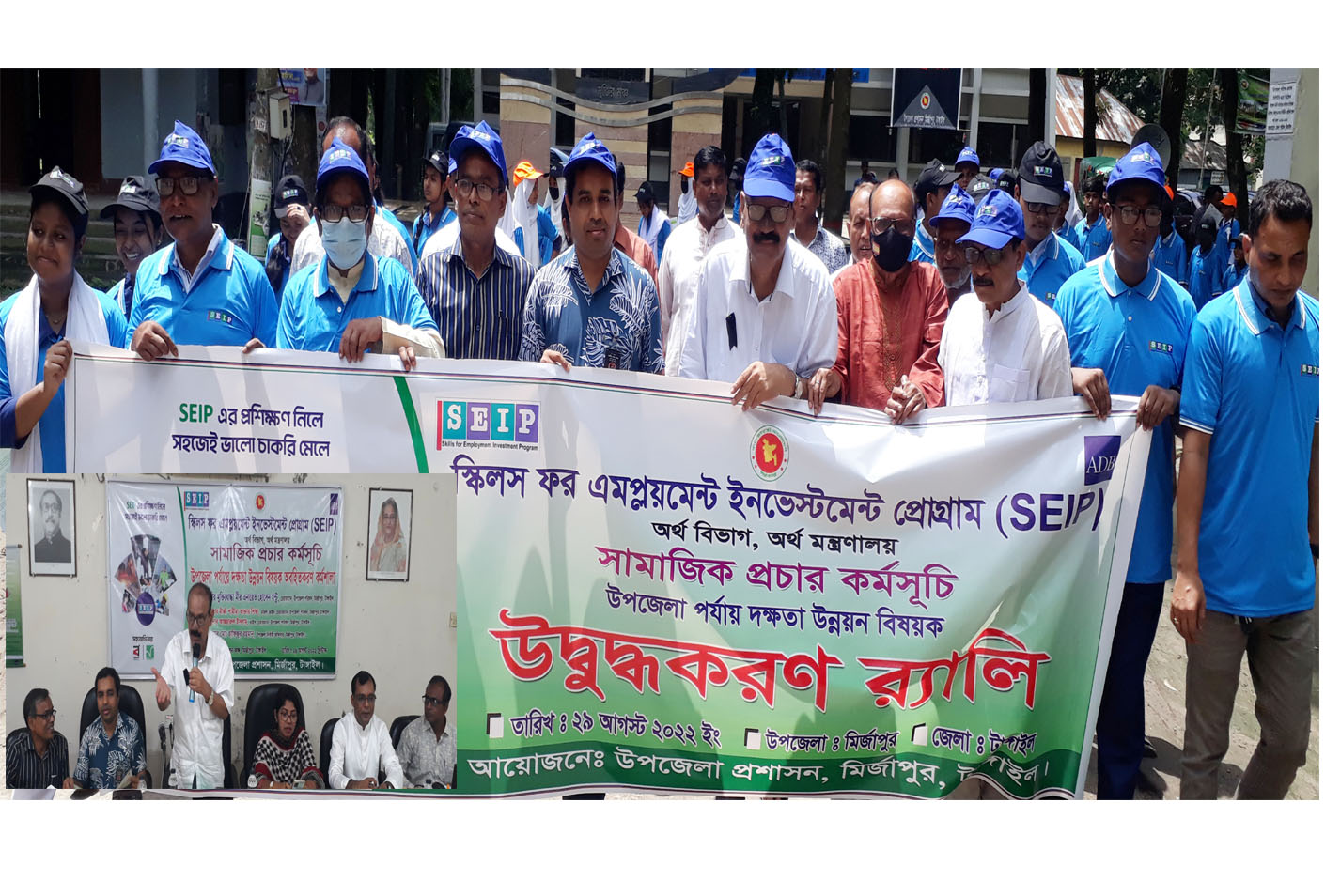 সামাজিক প্রচার কর্মসুচীর আওতায় সেফ ও অর্থ মন্ত্রনালয়ের উদ্যোগে দক্ষতা উন্নয়ন অবহিতকরন প্রশিক্ষণ কর্মশালা র্যালি হয়েছে। আজ সোমবার (২৯ আগস্ট) টাঙ্গাইলের মির্জাপুরে উপজেলা পরিষদ মিলনায়তনে কর্মশালা অনুষ্ঠিত হয়। এ উপলক্ষে সকালে উপজেলা পরিষদ চত্তরে বিভিন্ন শিক্ষা প্রতিষ্ঠানের শিক্ষার্থীদের নিয়ে একটি র্যালি বের হয়। র্যালি শেষে উপজেলা পরিষদ মিলনায়তনে কর্মশালা অনুষ্ঠিত হয়। অনুষ্ঠানে প্রধান অতিথি ছিলেন উপজেলা পরিষদের চেয়ারম্যান বীর মুক্তিযোদ্ধা মীর এনায়েত হোসেন মন্টু।